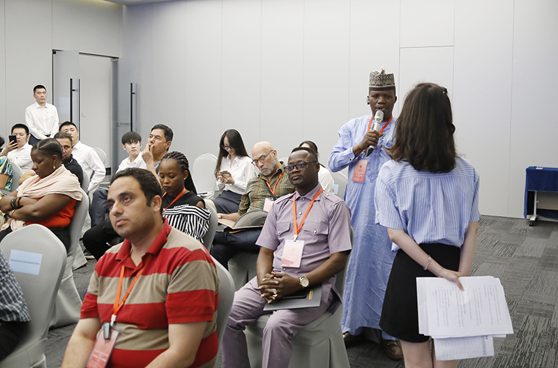 會上,鄭浩用英文介紹了杭鋼集團的概況以及冶金物資的經營發展情況,并與研修班學員互動,回答學員的現場提問。國際事業部相關業務負責人就具體業務內容與研修班學員進行交流。