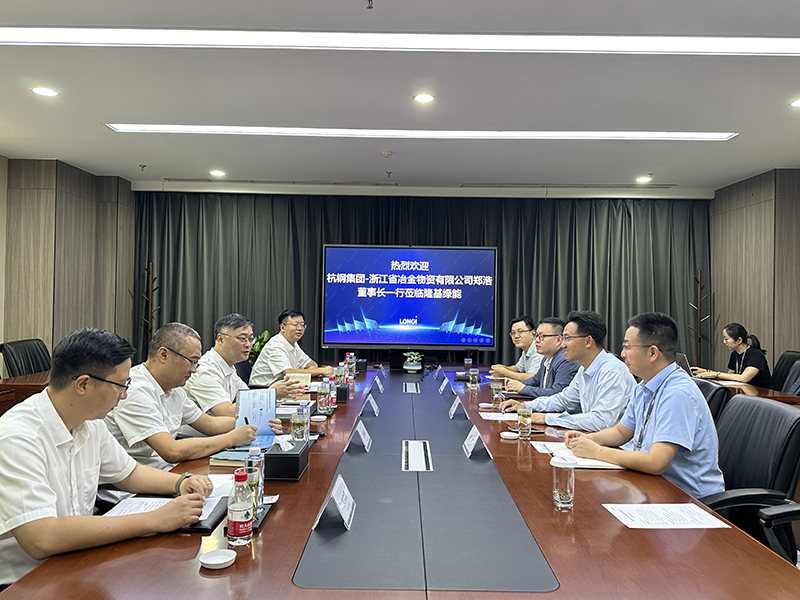 9月12日,冶金物資黨委書記、董事長鄭浩帶隊前往隆基綠能洽談業(yè)務合作。隆基綠能中國政企地區(qū)部副總裁陳月華熱情接待。隆基綠能中國政企地區(qū)部副總裁產品及解決方案部總監(jiān)屈寒冰,公司副總經理、杭鋼智安董事長周林軍及雙方相關部門(單位)負責人參加座談。