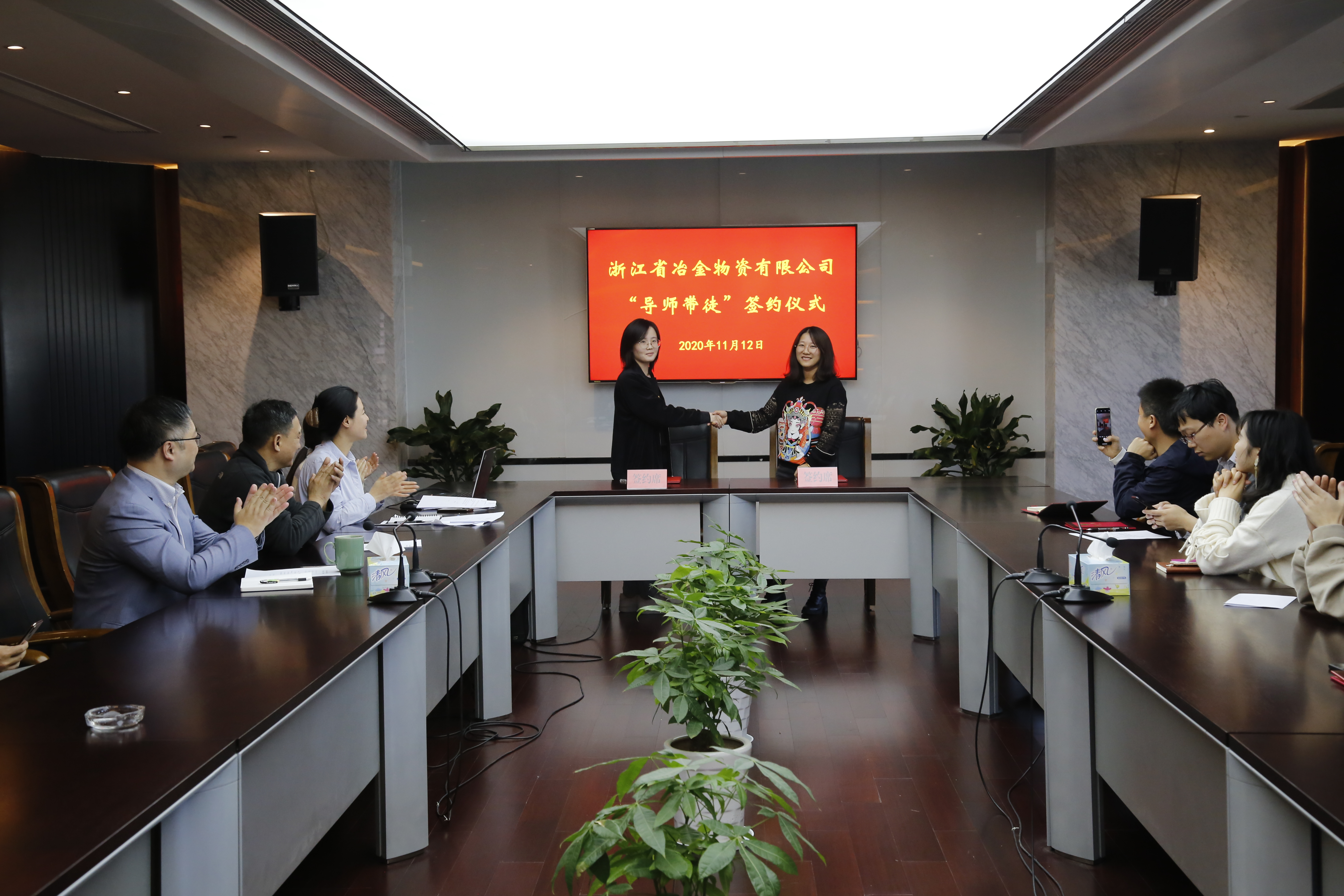 近日,浙江省冶金物資公司舉行2020年新職工“導(dǎo)師帶徒”簽約儀式。冶金物資公司黨委書(shū)記、董事長(zhǎng)鄭浩出席簽約儀式并講話,儀式由工會(huì)主席鐘智萍主持。